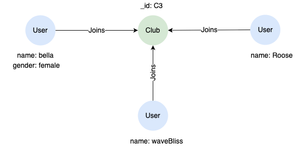 INSERT (:User {name: 'waveBliss'})-[:Joins]->(c:Club {_id: 'C3'}),